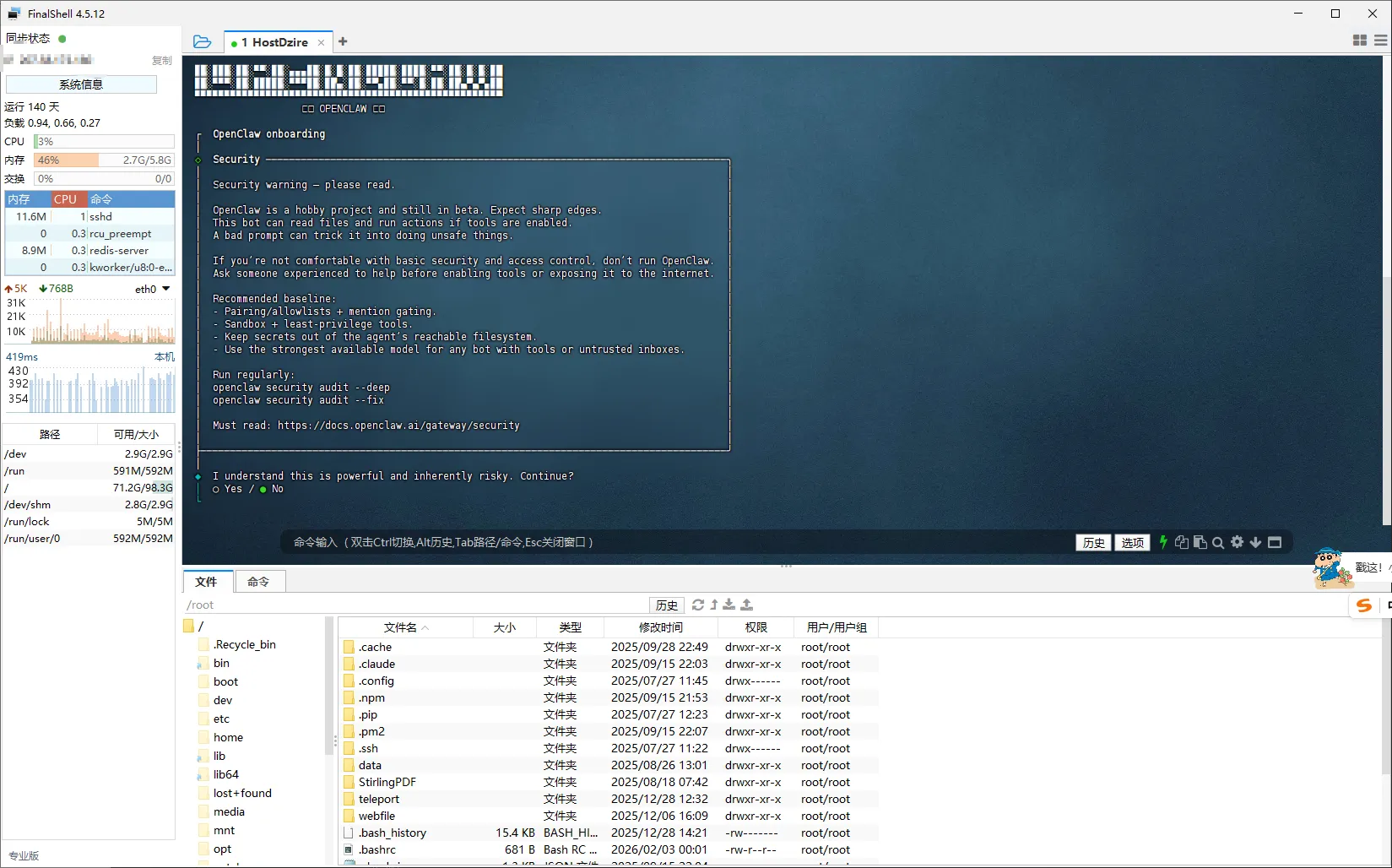 - 登录服务器SSH,或在MacOS打开你的终端程序,输入以下命令开始安装,耐心等待安装流程结束。等出现以下界面提示后,选择