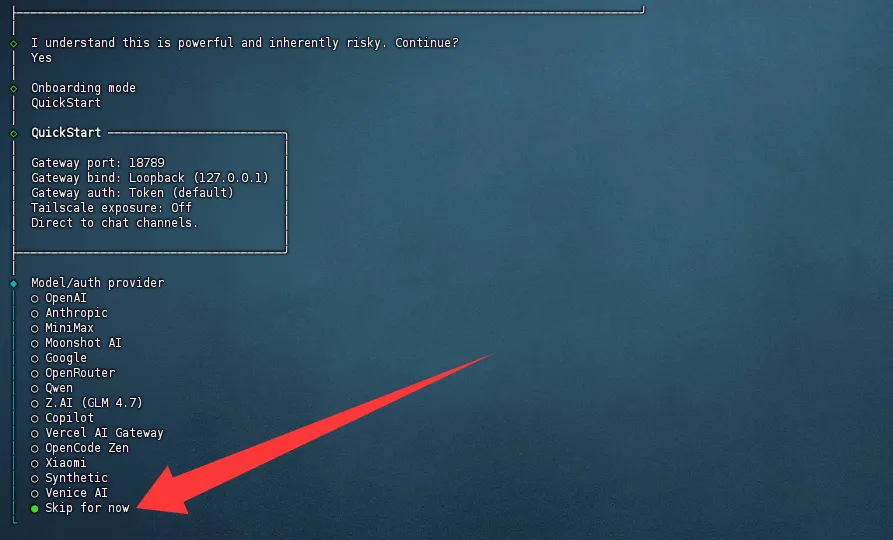 Skip for now回车确认,跳过设置