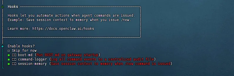- 这里选择Hook,使用空格键全选,然后回车确认,之后过程会有GateWay安装,请耐心等待