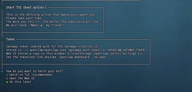 这里选择安装Skill,这个先跳过,后续可以通过网页进行安装