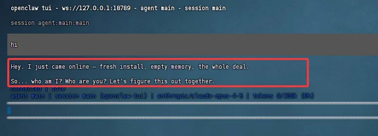 - 重启成功后,控制台输入以下命令,进入TUI界面,测试模型是否能正常输出。测试正常则输入