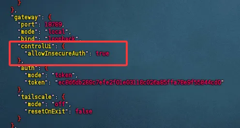 另外需要修改 ~/.openclaw 下的 openclaw.json文件,在 gateway 字段下添加以下内容