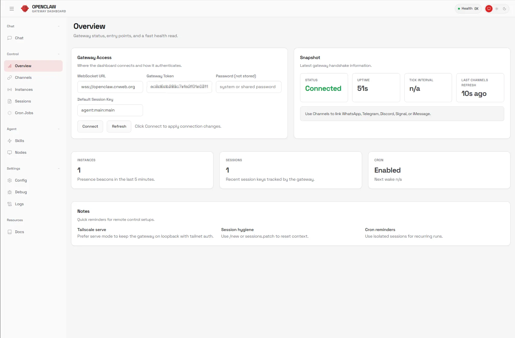 openclaw gateway restart- 访问带有Token的