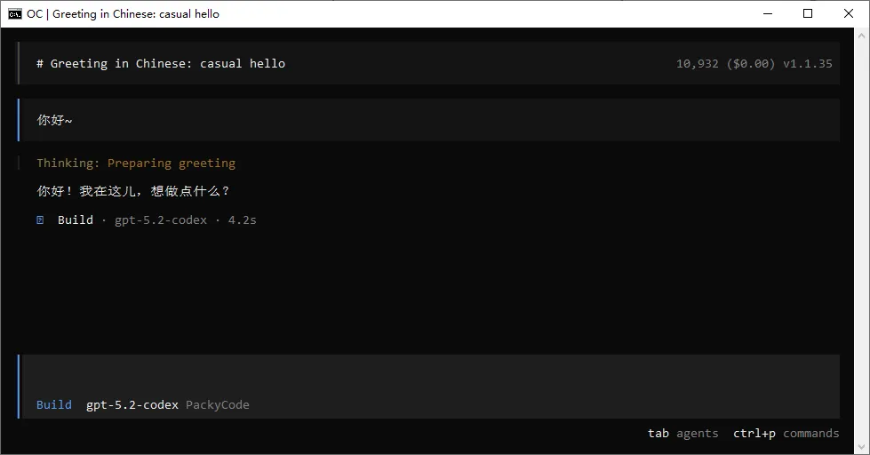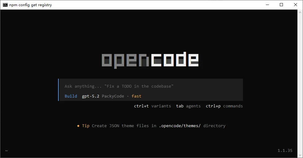 opencode命令若出现界面,则安装成功