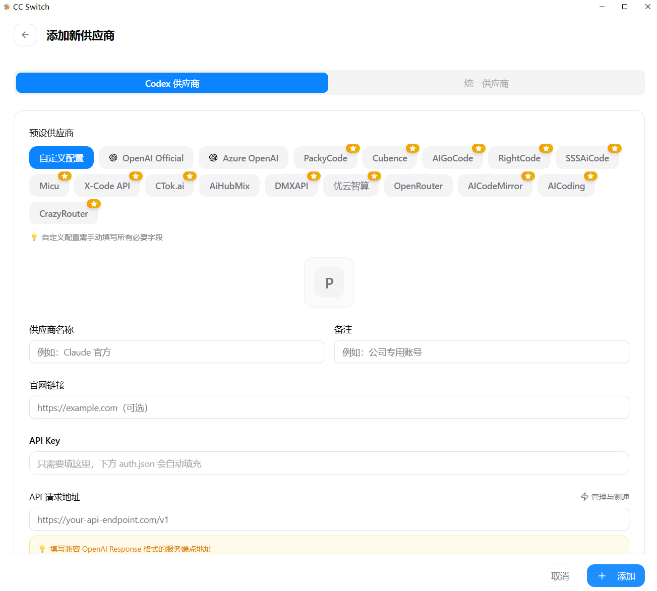 - 打开你下载的CC Switch软件,你会看到如下图的初始界面