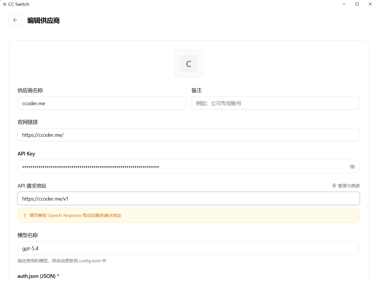 - 回顾 创建API令牌,在 cCoderApi 中创建 GPT全模型 分组的令牌,点击复制按钮,复制ApiKey到剪切板
